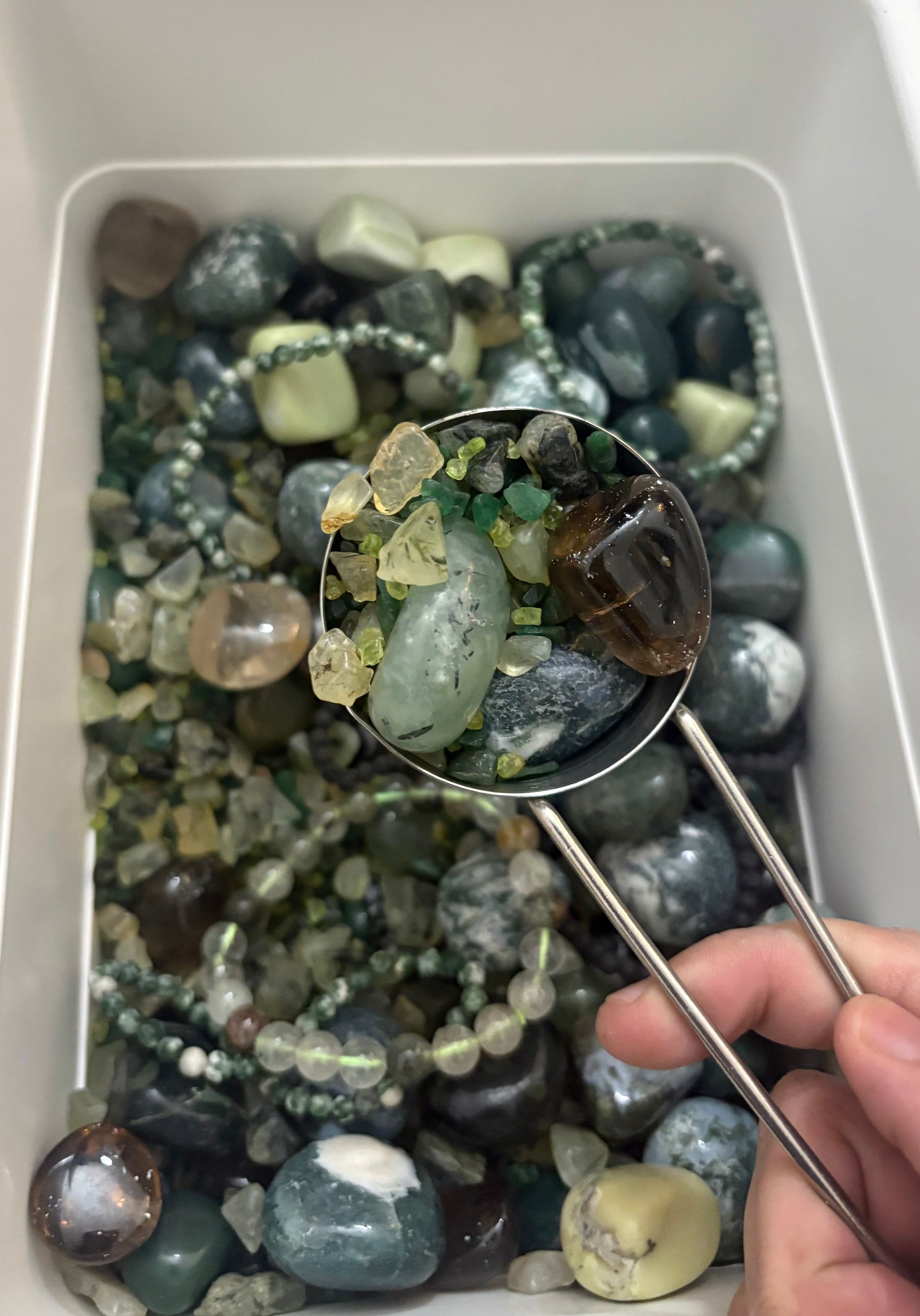 Earth Crystal Confetti is a vibrant mix of small, tumbled and raw crystals chosen for their deep connection to nature and growth. This blend may include stones like Moss Agate, Green Aventurine, Tiger’s Eye, Jasper, and Smoky Quartz, each representing the grounding and nurturing energy of the earth. Perfect for sprinkling in plant pots, terrariums, or garden beds, this confetti adds a natural touch to any green space. Use it to enhance your connection with nature, decorate sacred spaces, or as a unique offering for plant lovers.