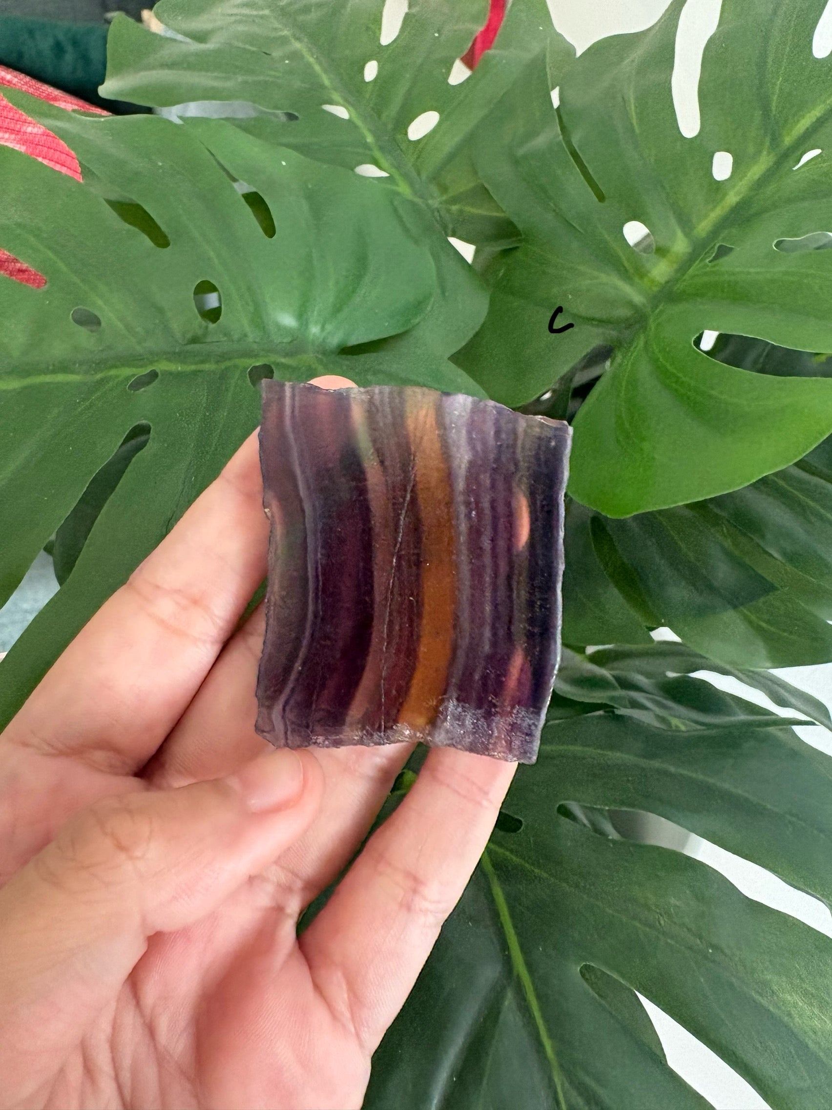 Fluorite is known as a stone of clarity and insight, making these stunning slabs a perfect tool for spiritual growth. With vibrant bands of purple, green, blue, and clear hues, each piece carries a unique energy. Fluorite is often used to enhance focus, intuition, and connection to higher wisdom. Polished to a smooth finish, these slabs are ideal for meditation, energy work, or as a captivating display piece that radiates a sense of clarity and harmony.