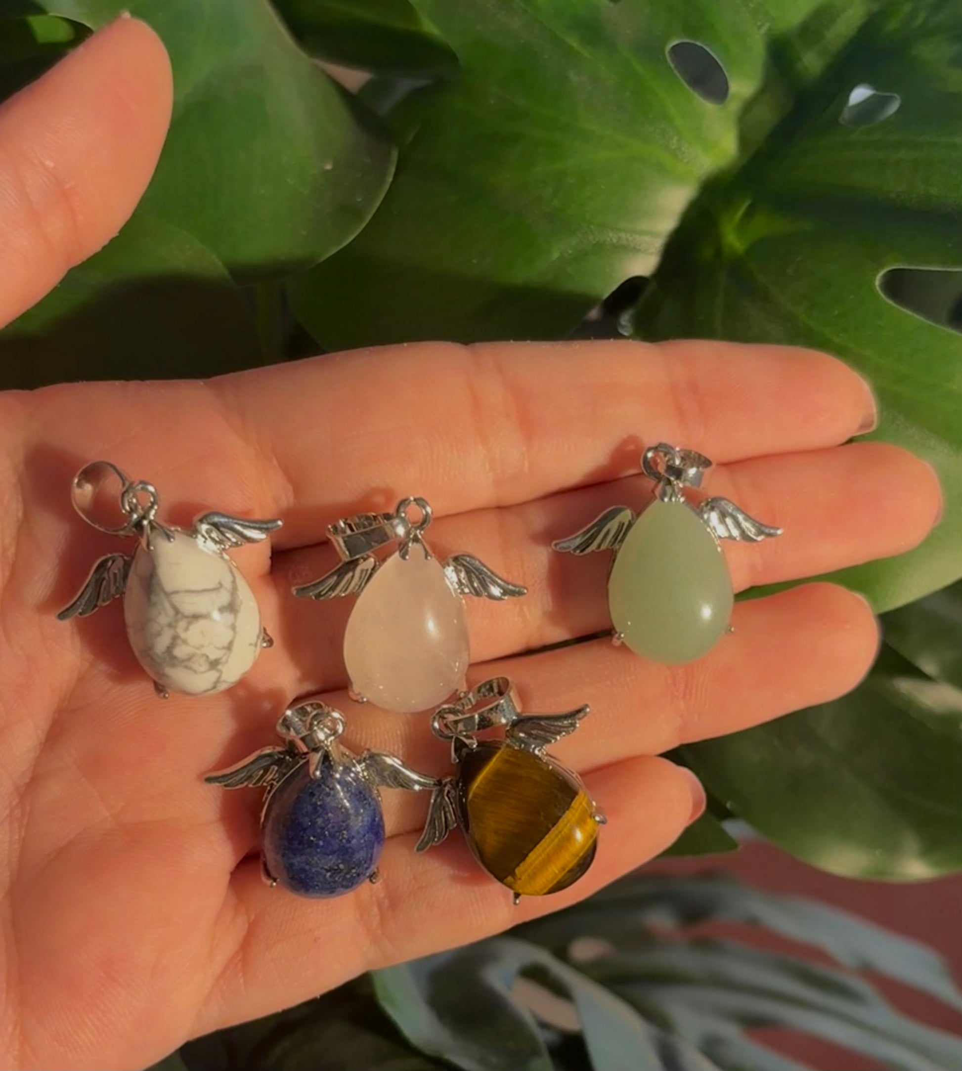 A delicate blend of grace and symbolism. Featuring beautifully crafted angel wings embracing a teardrop crystal, these pendants symbolize protection, hope, and divine guidance. Perfect for those seeking a meaningful and elegant accessory to carry positivity and light wherever they go.