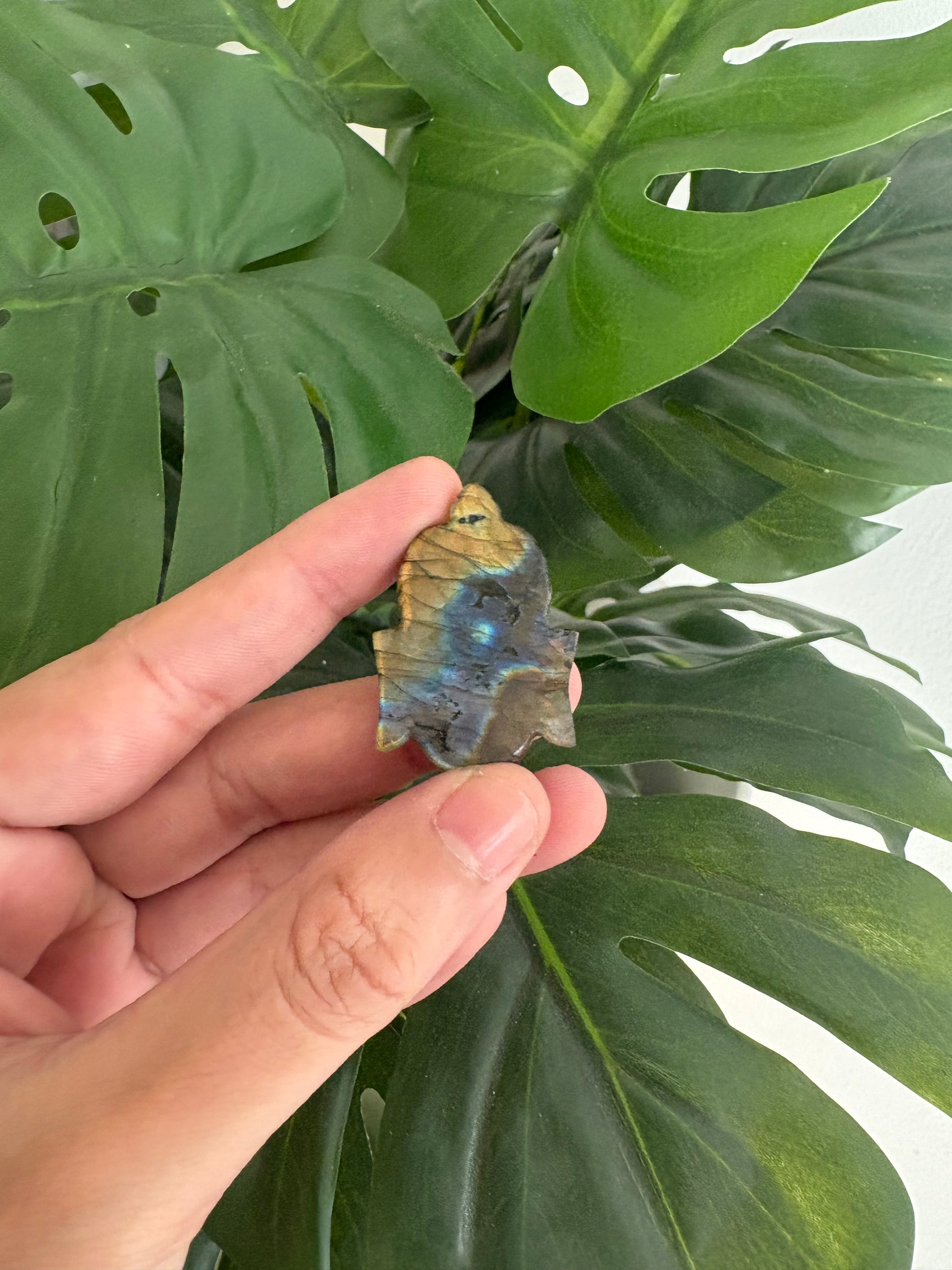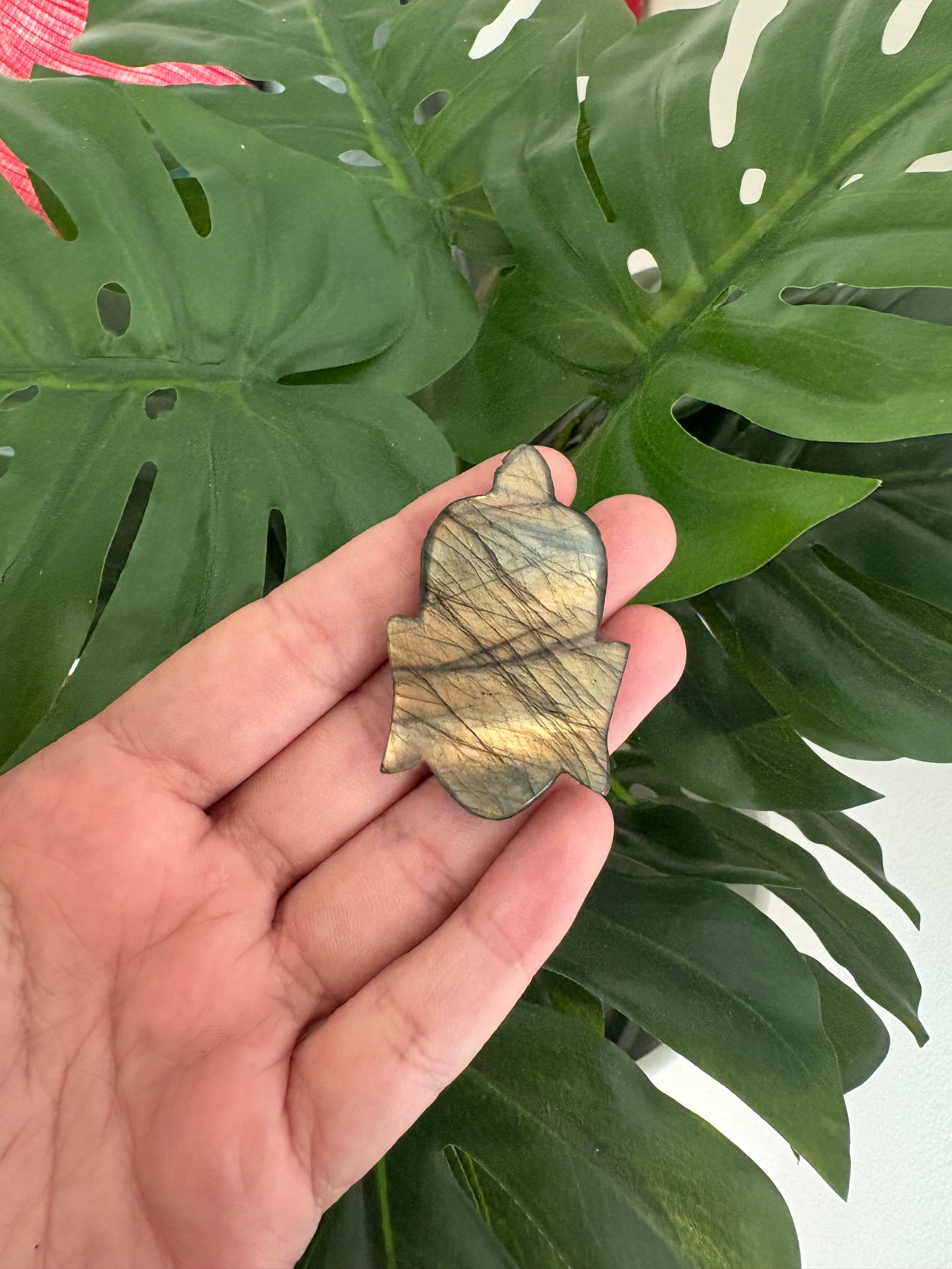 This intricately carved Buddha face in Labradorite embodies wisdom, serenity, and spiritual awakening. With its mesmerizing flashes of blue, green, and gold, Labradorite is often called the as Stone of Magic, believed to enhance intuition, transformation, and inner vision.